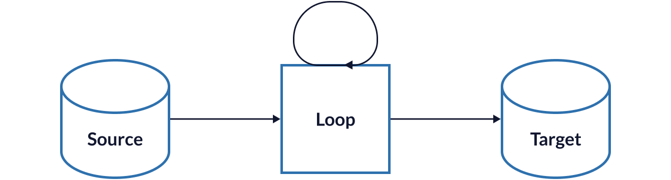 The first attempt was the simplest: load all the source data into memory and iterate through it, writing it to our target database.