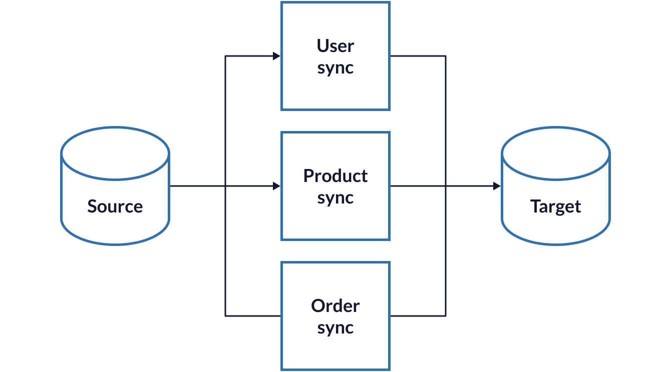 Further to this, the sync process was broken down further into different stages to improve testability and code reuse, as well as to better manage our connection to the source database.