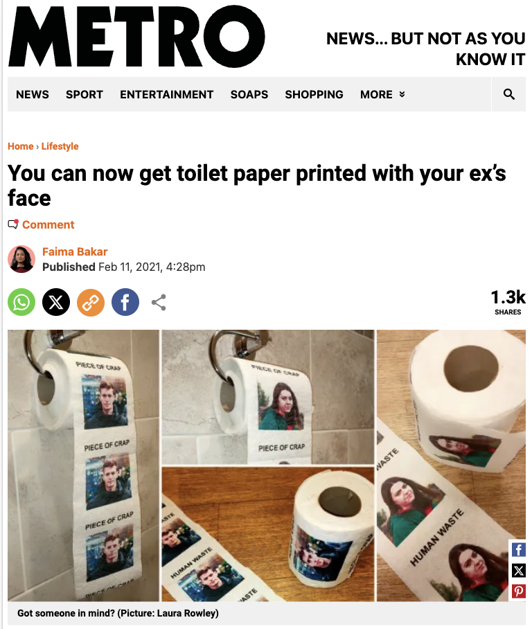 Our Digital PR team landed some amazing coverage from LadBible on Valentine's Day with a campaign around getting your ex's face printed on our toilet roll. That led to me getting calls from a load of radio stations asking for interviews which was crazy - I did one with a station in Ireland.