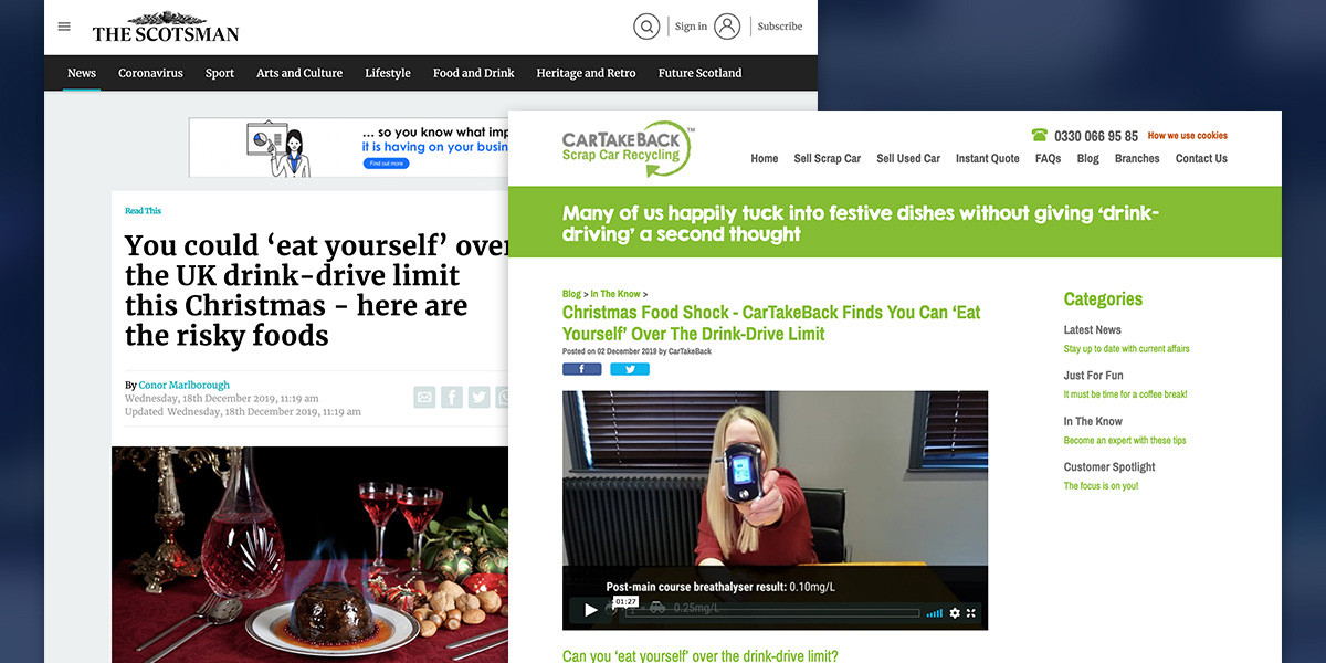 Workings: We conducted a study into whether alcoholic food can push you over the drink-drive limit. We ate a 3-course Christmas menu consisting of supermarket food that contains alcohol. The experiment found you can be tipped over the drink-drive limit by boozy food - if you’ve had one standard glass of wine. We also secured quotes from relevant organisations to add authority.