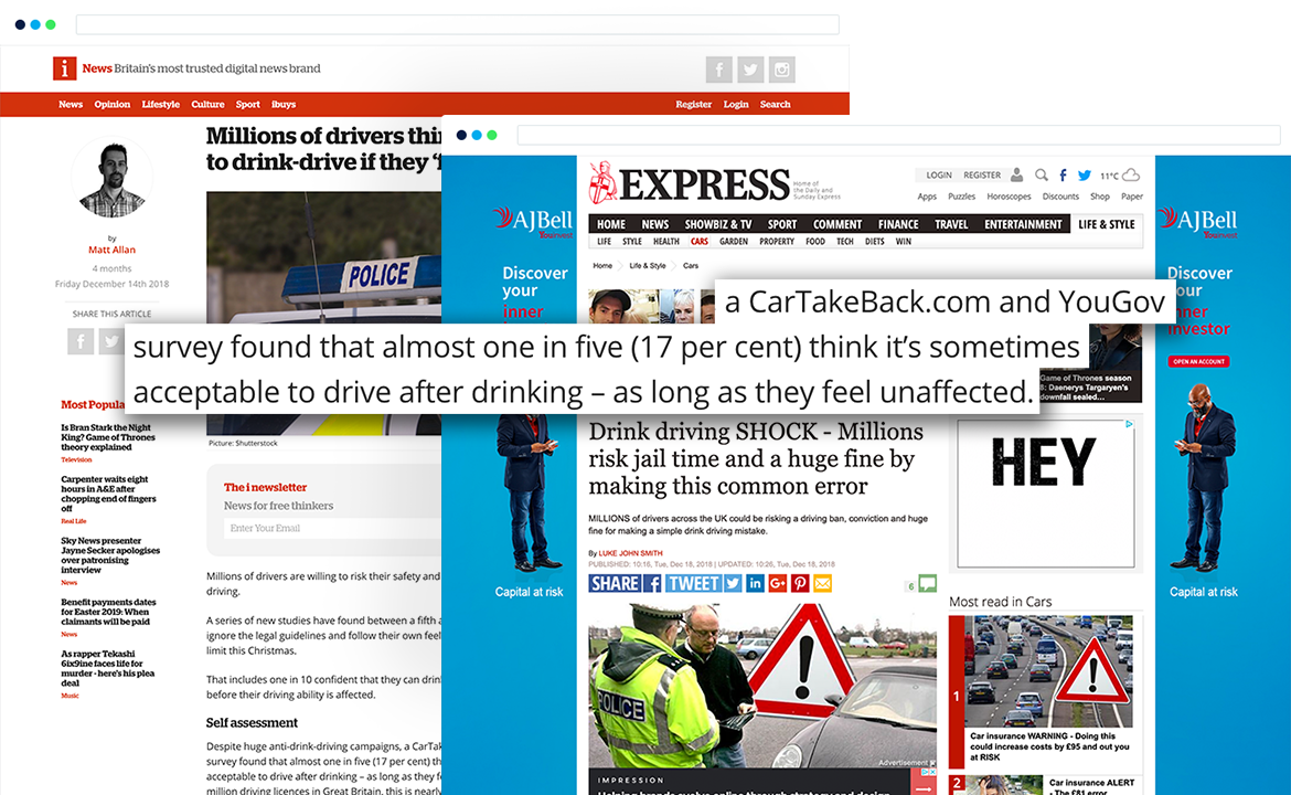 Aim: To raise awareness of drink driving around the festive season, via a carefully-selected demographic source - YouGov.