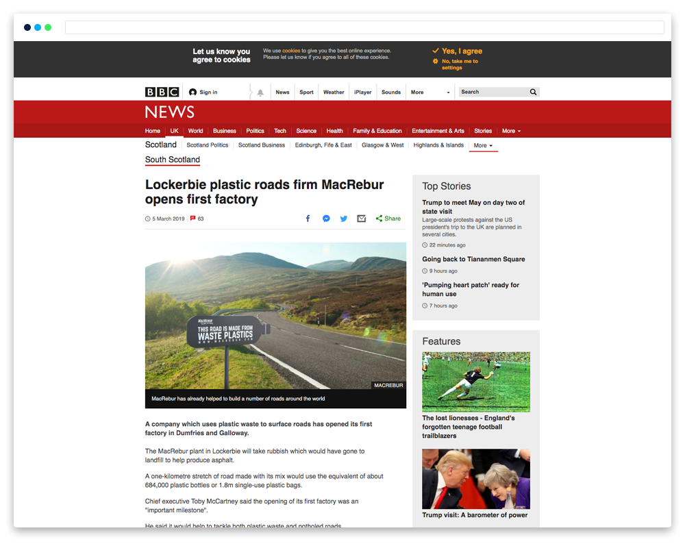 "Therefore, it was acting as a solution to avoiding tons of current plastic waste going to landfills and eventually being dumped where it would continue to affect our environment. In this case, I did my own research into the company and how they aimed to work with several more councils in the UK in different regions. I had a news line regarding how they already had plans to deliver the process of turning local plastic waste into roads in specific regions; gaining planning permission for certain areas.