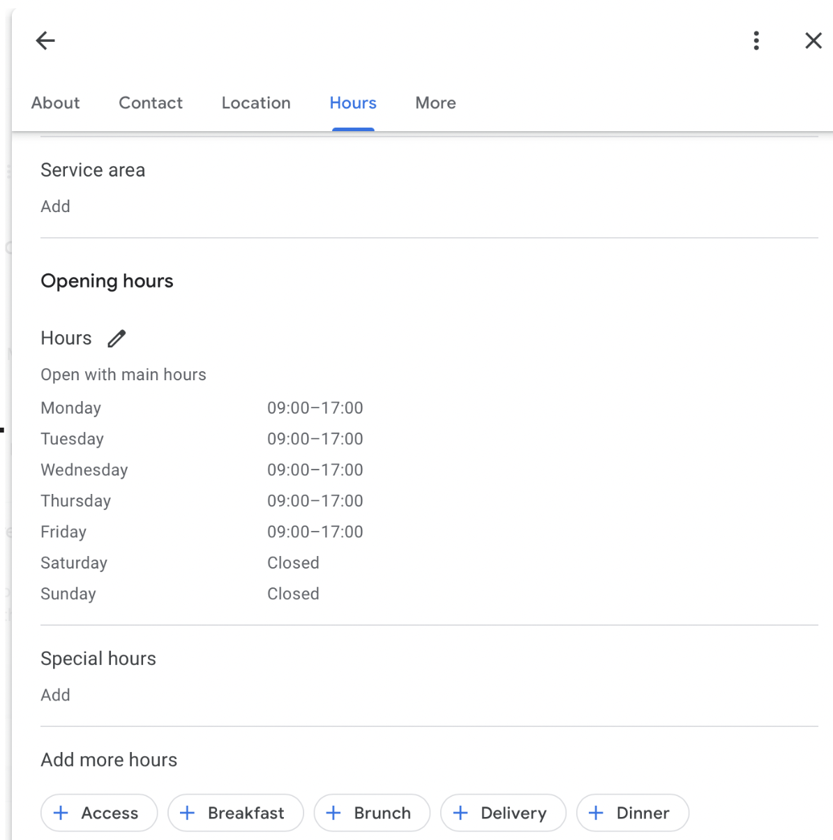 You should also make sure to update holiday operating hours to keep your customers informed about when they can get in contact with you. It's particularly important if you have an advantage over your competitors and have better operating hours than them over holiday periods, because it helps direct customers to your business instead.