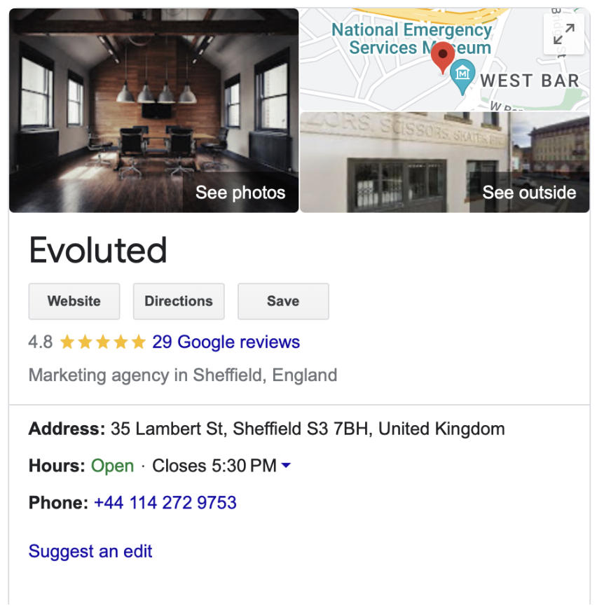 - Search your business on Google. You should be shown an interface similar to the below. Now navigate to and click ‘‘Edit profile’
