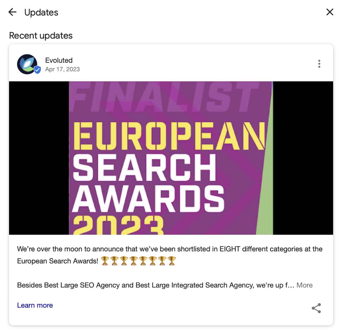 Google allows you to add regular updates to your profile, keeping users informed about your latest ventures! They help keep users informed about key updates, add engaging visual content to your profile and show that your business is active.