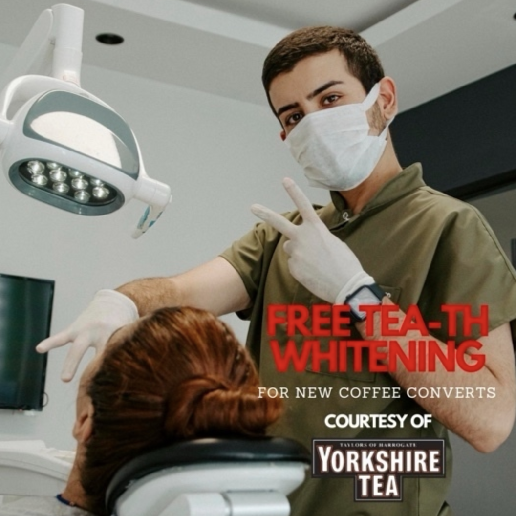 For those who pledge to replace their morning flat white with a delicious brew of Yorkshire Tea, the brand will offer free teeth whitening for as long as they remain loyal to the teabag.