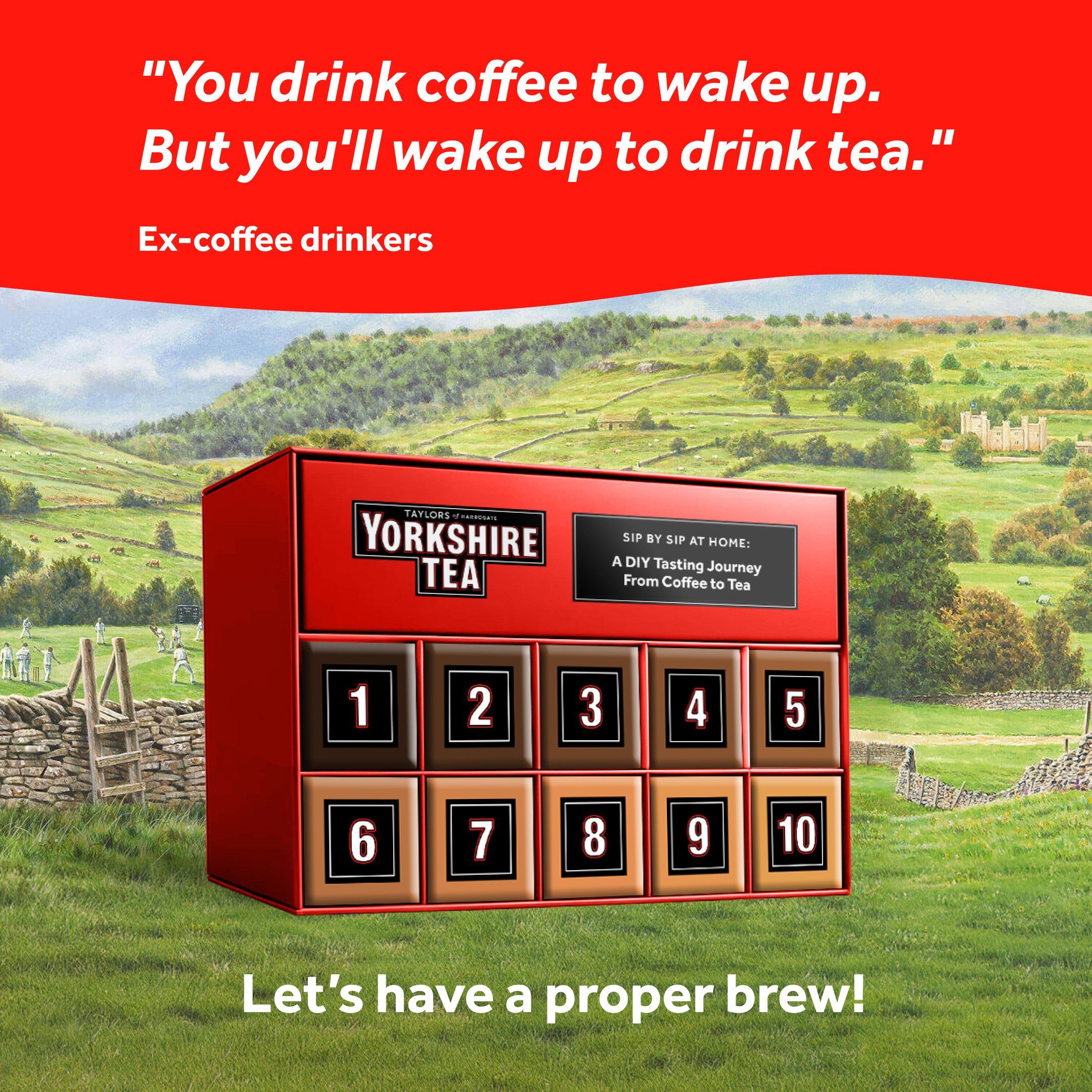 It’s a big change, so Yorkshire Tea will help them take it slowly with their ‘Sip by Sip: A DIY Tasting Journey From Coffee to Tea' kits.