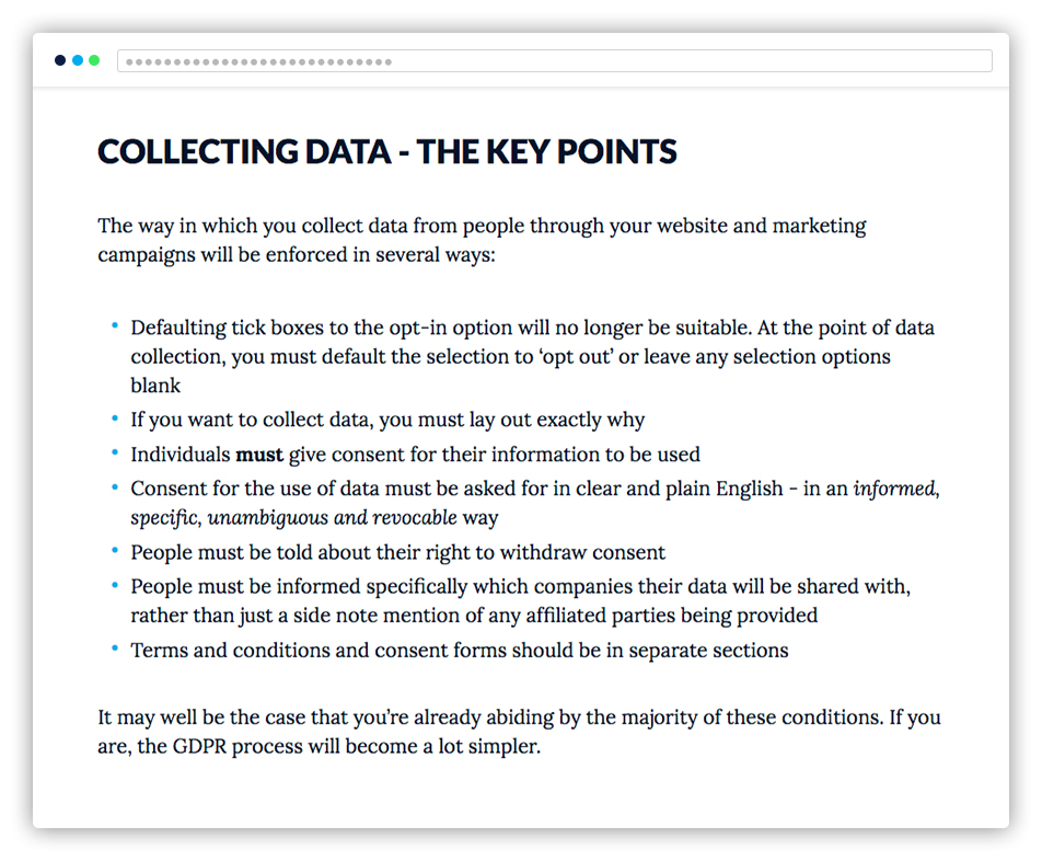 It was important this piece we put together around GDPR, websites and marketing was entirely accurate. We wanted to educate clients and external readers around the subject so it was important the information we presented was exactly in line with the regulations.