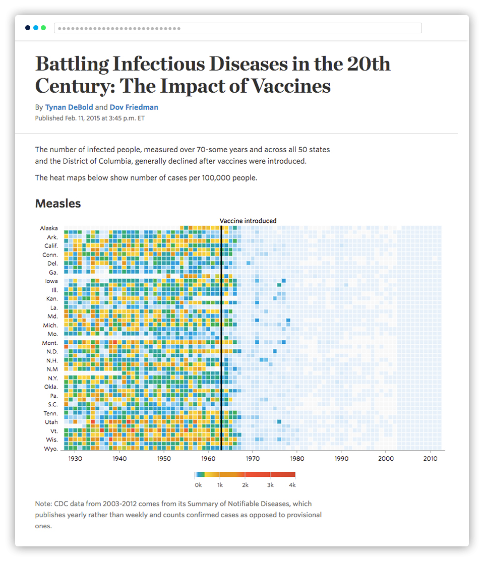 This Wall Street Journal article is a great example of a piece with strong sources that will encourage people to share and discuss the article. They have taken a strong source and enhanced it with engaging data visualisations.