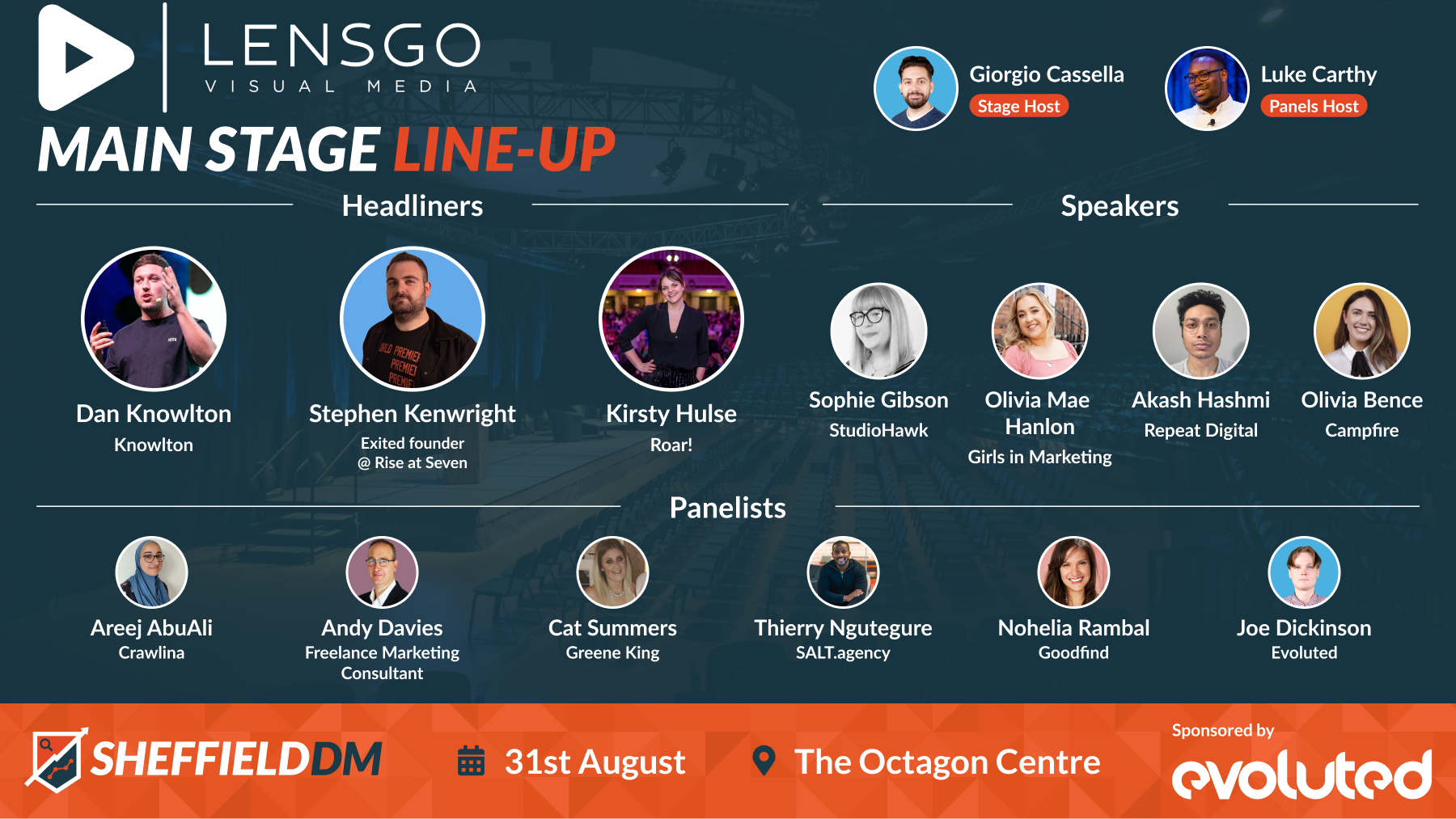 Putting their name to the Main Stage as headline sponsors are LensGo Visual Media, who have supported Sheffield DM's smaller evening meetup events for over a year by providing high-quality videography and photography.