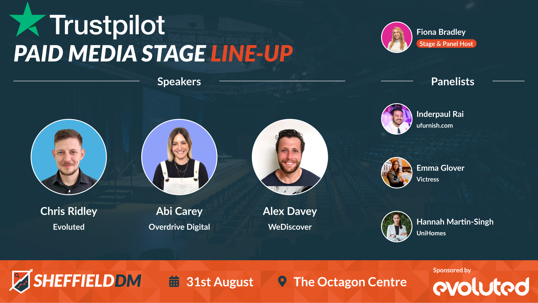 "It'll be great to connect and listen to talks by some of our amazing industry partners, such as Overdrive's Abi Carey, on the Trustpilot Paid Media Stage!"