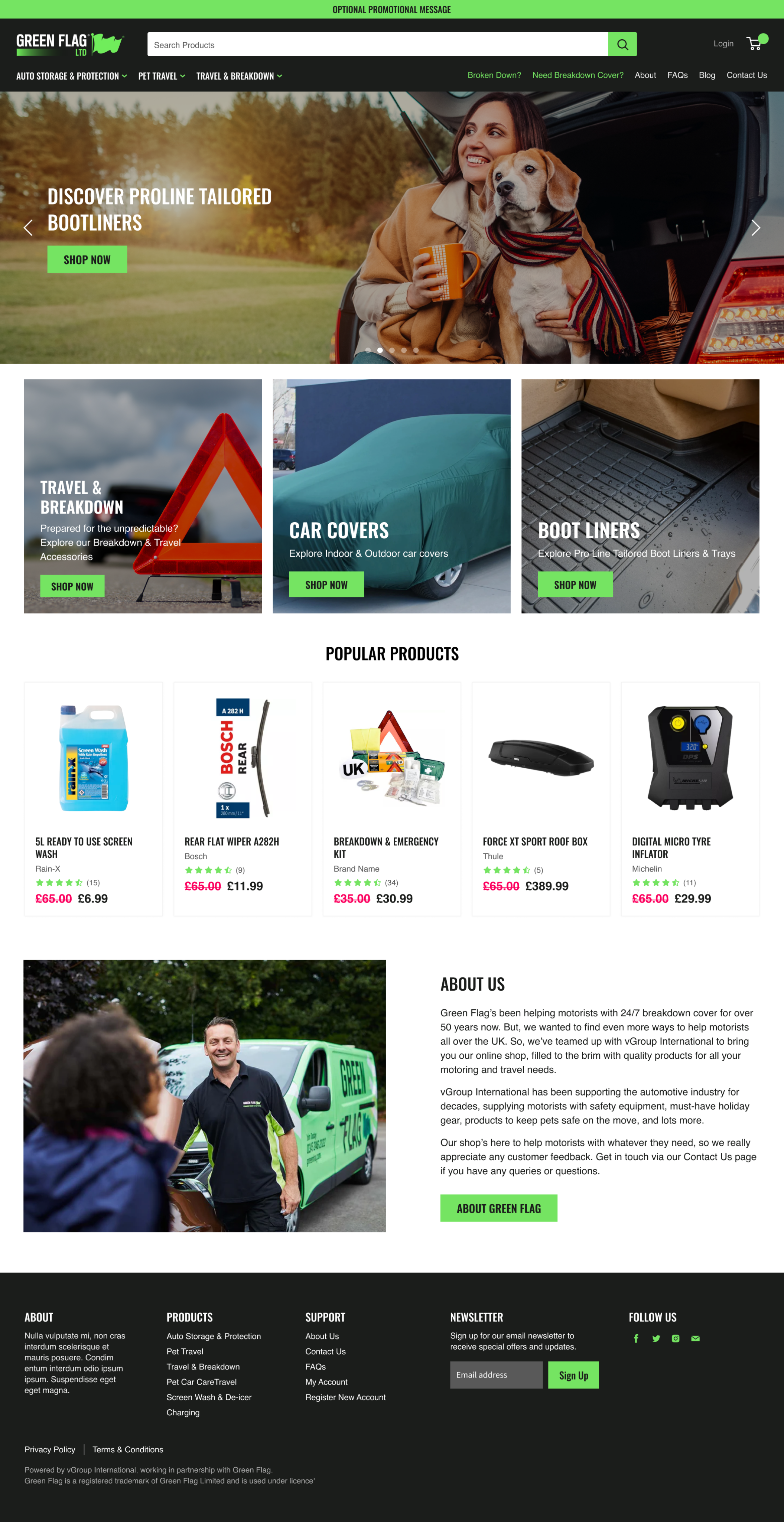 Breakdown cover providers Green Flag wanted to establish an online store, to support a new ecommerce opportunity for the brand. Due to the competitive nature of the market, the client needed a platform that could be delivered quickly to start competing instantly.