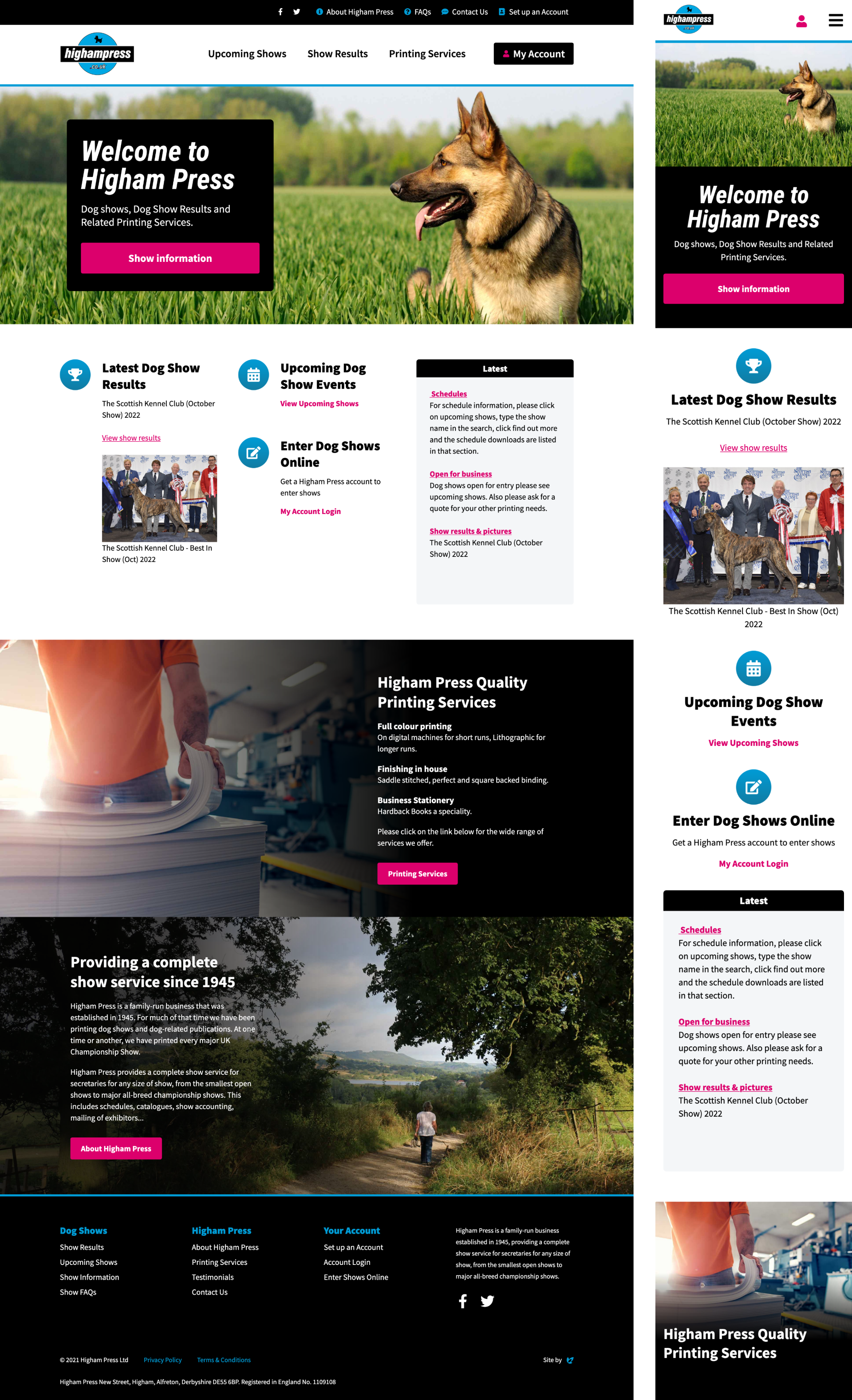 Higham Press has been providing end-to-end show service for dog shows from small open shows to major all-breed championships since 1945.