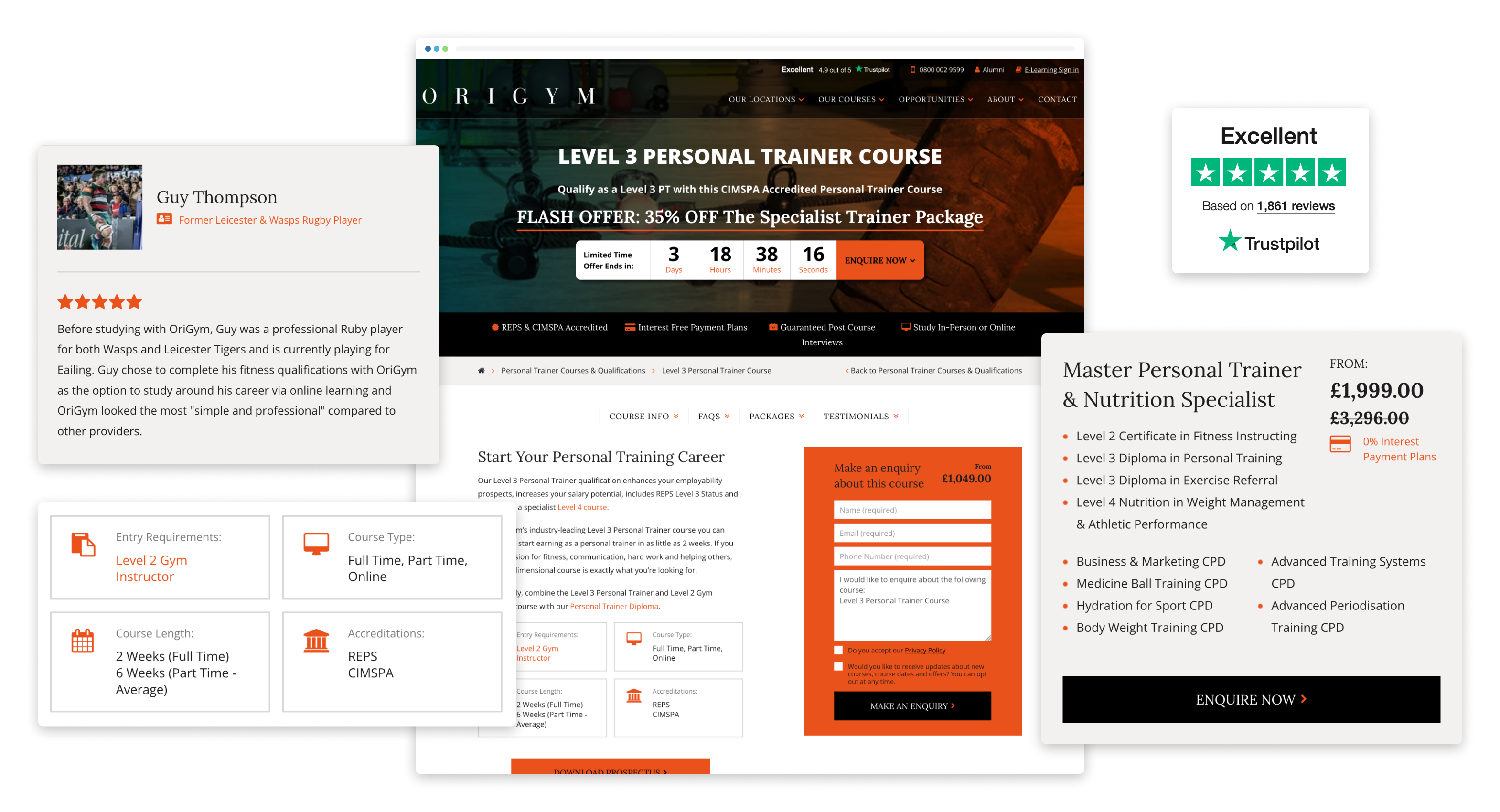 Addressing onsite content we introduced new page templates on money pages and blog pages to improve navigation and increase the amount of useful content on each page. These templates also featured areas for testimonials and student reviews, introducing the benefit of social proofing. We optimised the copy across key money pages after conducting thorough keyword research and mapping while working internally with the OriGym team to match their language and tone of voice.