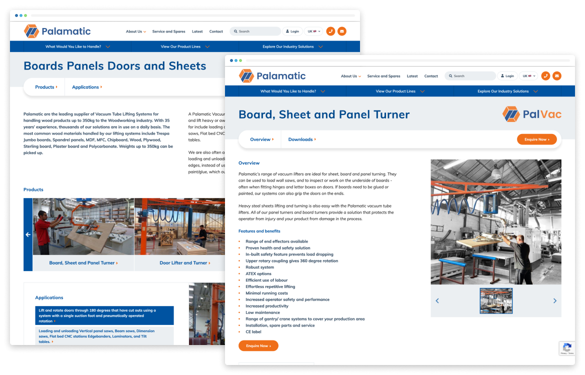 Palamatic were looking to boost lead generation and establish themselves as vaccum lifter specialists, but were struggling with low search volume for their product lines and a website that didn't effectively present their complex offerings to UK and US customers.