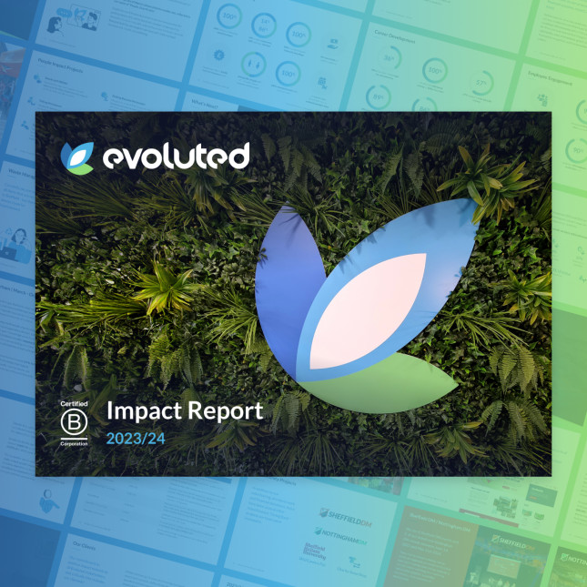 After certifying as a B Corp™️ in February 2024, we have published our very first Impact Report, structured broadly in line with the five B Lab Impact Assessment impact areas, documenting the work we have undertaken across our most recent financial year towards making Evoluted a force for good.