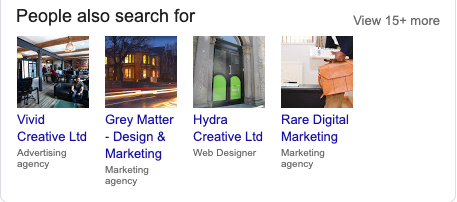 The downside of organising your business into categories, is Google My Business includes a ‘People Also Searched For’ section on the GMB panel.