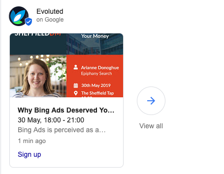 Extra Tip: Currently posts only appear on your Google My Business profile, but after shutting down Google+ and putting a new focus on ‘Google Discover’ it’s likely that one day GMB Posts might be visible on users Discover feeds too.